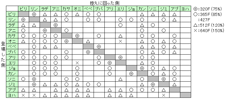 極端ですが◎と×なら320Fの差が出ます。体力に換算すると、×の組み合わせが満タンになった時点で、◎の組み合わせは満タン+体力が10(プパ遠Bのダメージに相当)回復している計算です。バカにできませんねこれ。