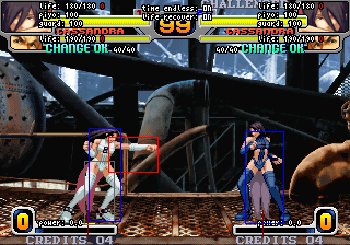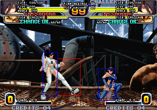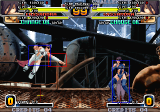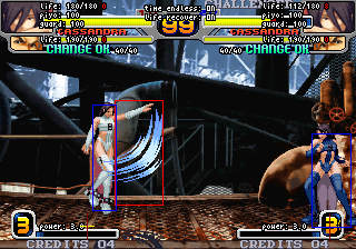食らい判定が一切前に出ない中段技。他キャラの特殊技中段と比べると最も出が遅いかわりに、屈みヒット時はノーキャンセルでしゃがみCからのコンボやデュプレックスが入り、ガードされても隙がないのが特徴です。
