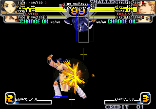 ③ジミーのガードキャンセルが空振りした場合、なぜか間を置いて2回目の攻撃判定が出ます。63214P派生なし版の3段目も同じ現象が起こります。